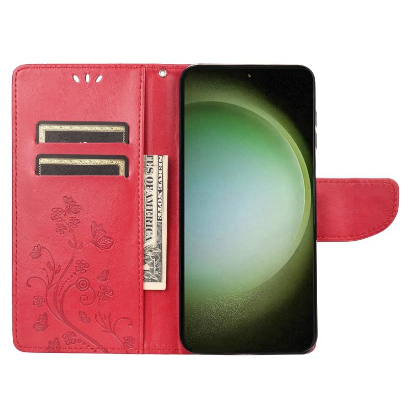 Θήκη τηλεφώνου Samsung Galaxy S23 Ultra 5G, δερμάτινη, με σχέδιο πεταλούδας και λουλουδιών (Μαύρο)