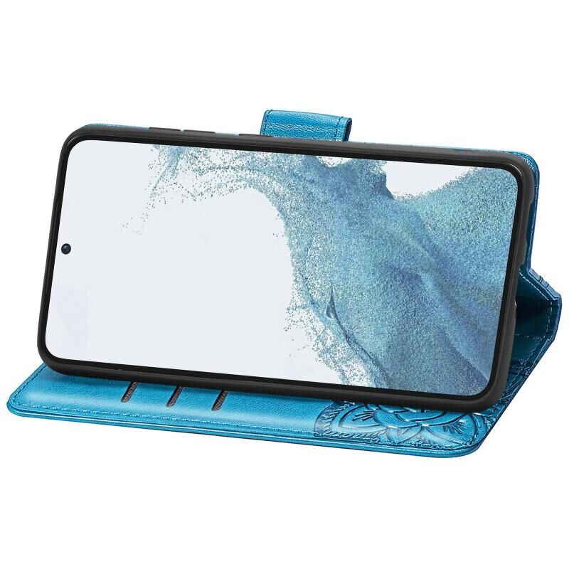 Θήκη τηλεφώνου Samsung Galaxy S23 Ultra 5G από δέρμα με ανάγλυφο σχέδιο πεταλούδας και λουλουδιών (Μπλε)