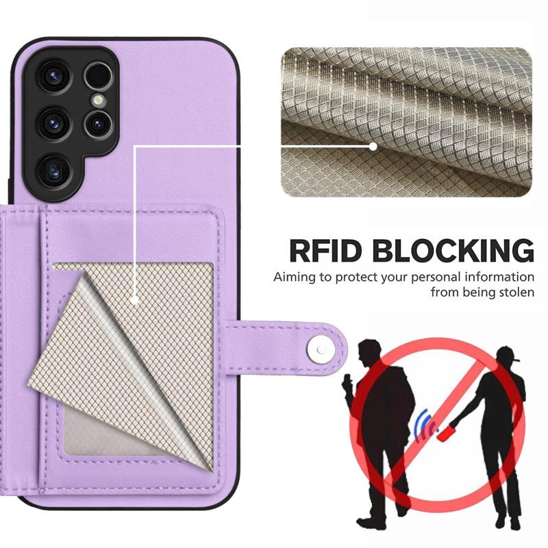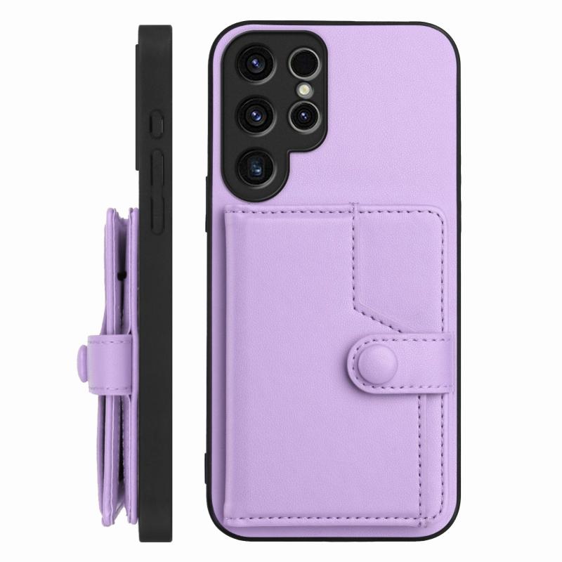 For Samsung Galaxy S23 Ultra 5G Button Card Bag RFID Anti-theft Phone Case(Purple)
