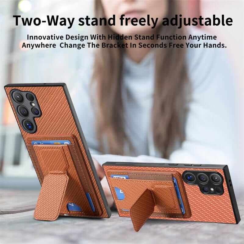 Για το Samsung Galaxy S23 Ultra 5G ανθρακονήματα Fiber Fold Stand ελαστική κάρτα τσάντα υπόθεση τηλεφώνου (καφέ)