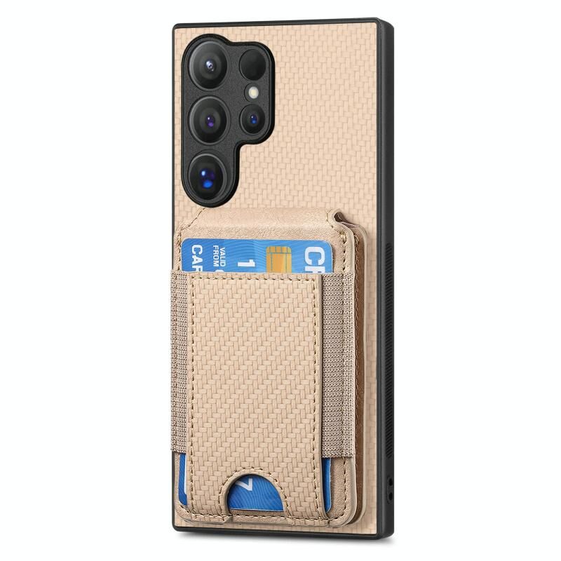 Για Samsung Galaxy S23 Ultra 5G Carbon Fiber Κάθετη Flip Wallet Stand υπόθεση τηλεφώνου (χακί)