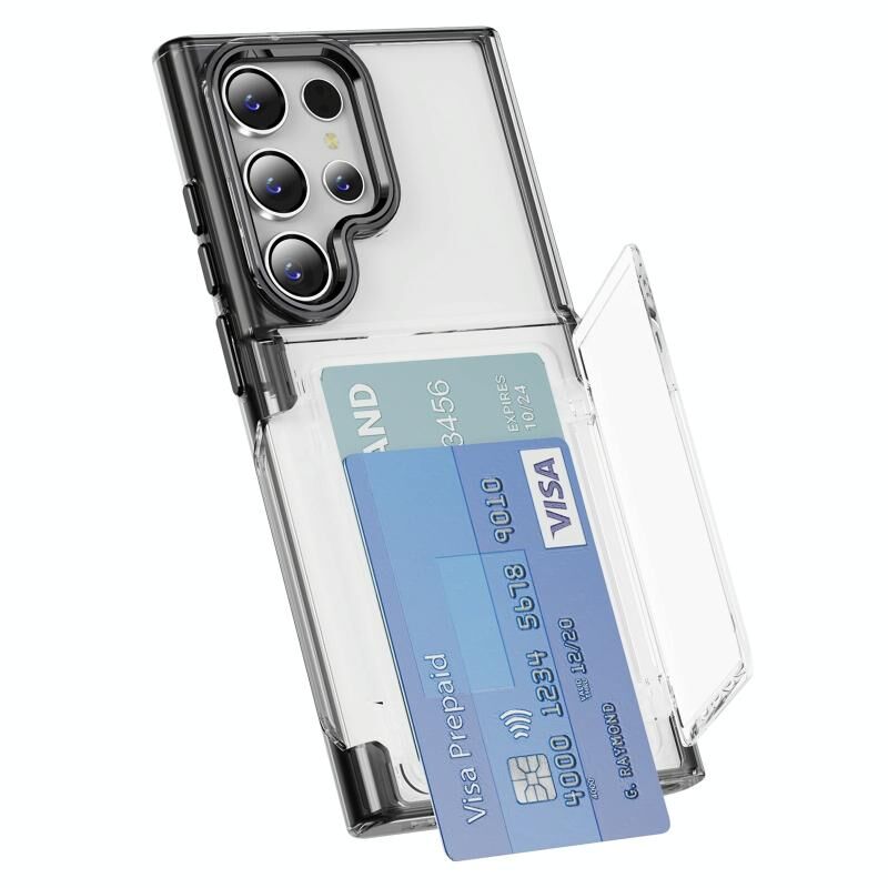 Για Samsung Galaxy S23 Ultra 5G Κάτοχος κάρτας Ακρυλικό Υβριδικό TPU τηλέφωνο υπόθεση (διαφανές μαύρο)