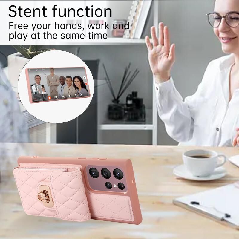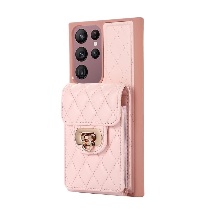Για Samsung Galaxy S23 Ultra 5G Υποδοχή κάρτας δερμάτινη θήκη τηλεφώνου (ροζ)