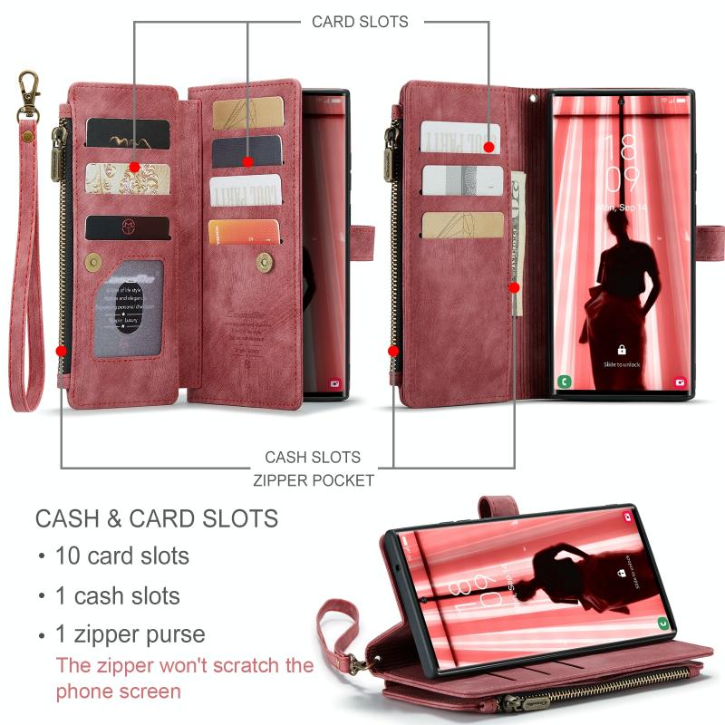 6. 10 θήκες για κάρτες + 1 θέση πορτοφολιού + 1 τσέπη με φερμουάρ (πραγματικά με βάση την εικόνα)