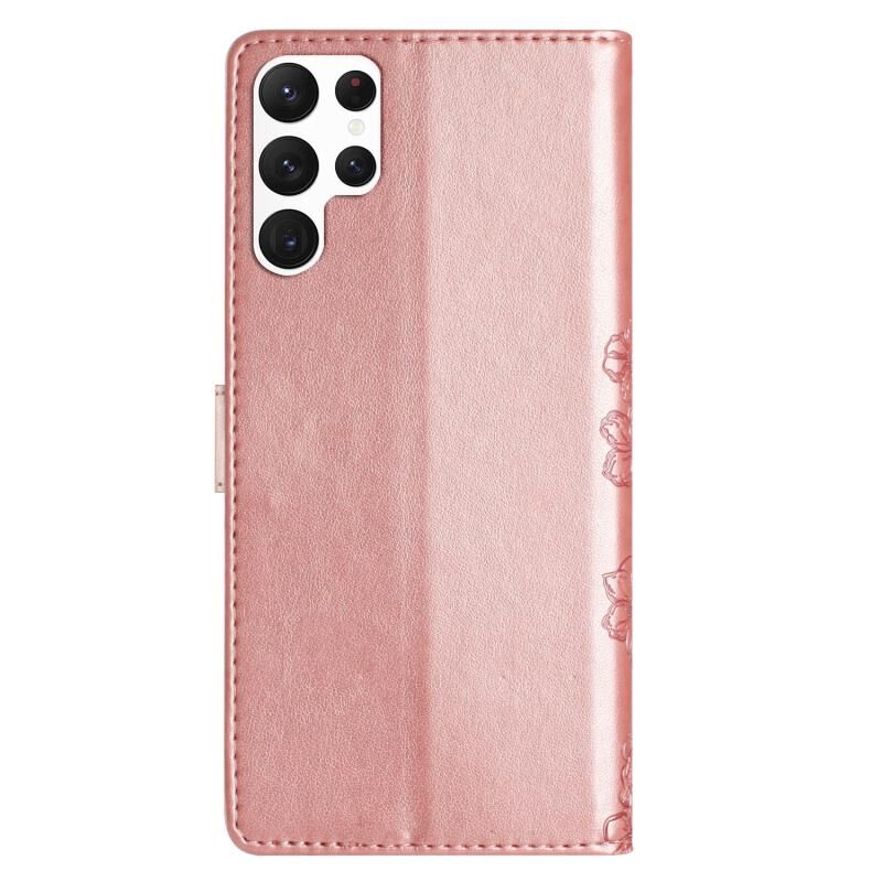 Θήκη τηλεφώνου Samsung Galaxy S23 Ultra 5G Cherry Blossom Butterfly με ανάγλυφο PU υλικό αίσθησης δέρματος (Κόκκινο)