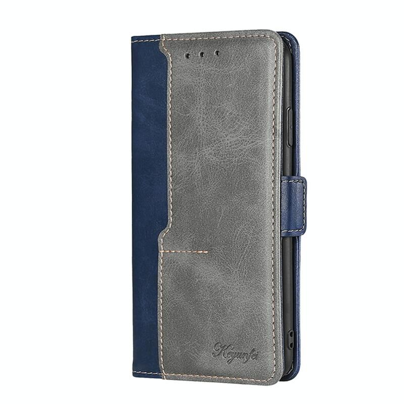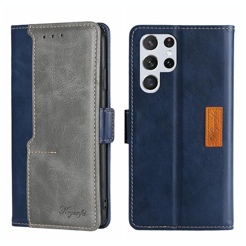 Για Samsung Galaxy S23 Ultra 5G αντίθεση χρώμα πλευρά πόρπη δερμάτινη θήκη τηλεφώνου (μπλε + γκρι)