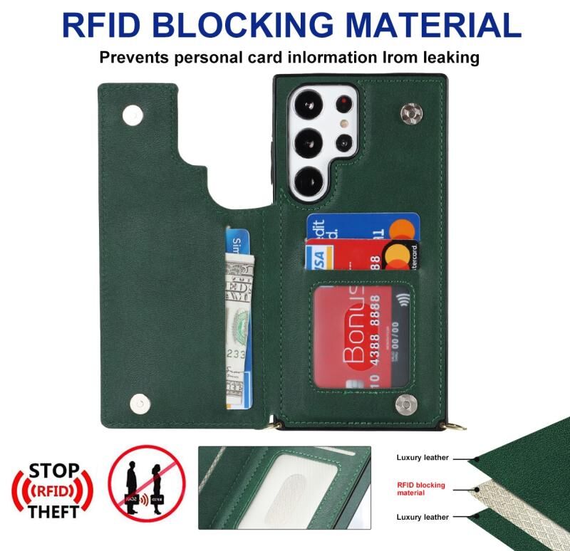 Για Samsung Galaxy S23 Ultra 5G Cross-body τετράγωνο διπλό πόρπη Flip κάρτα τσάντα TPU + PU υπόθεση (πράσινο)