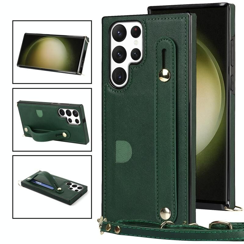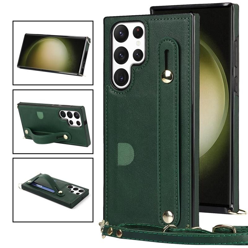 Για Samsung Galaxy S23 Ultra 5G Cross-body Wristband Holder τετράγωνη θήκη τηλεφώνου (πράσινο)