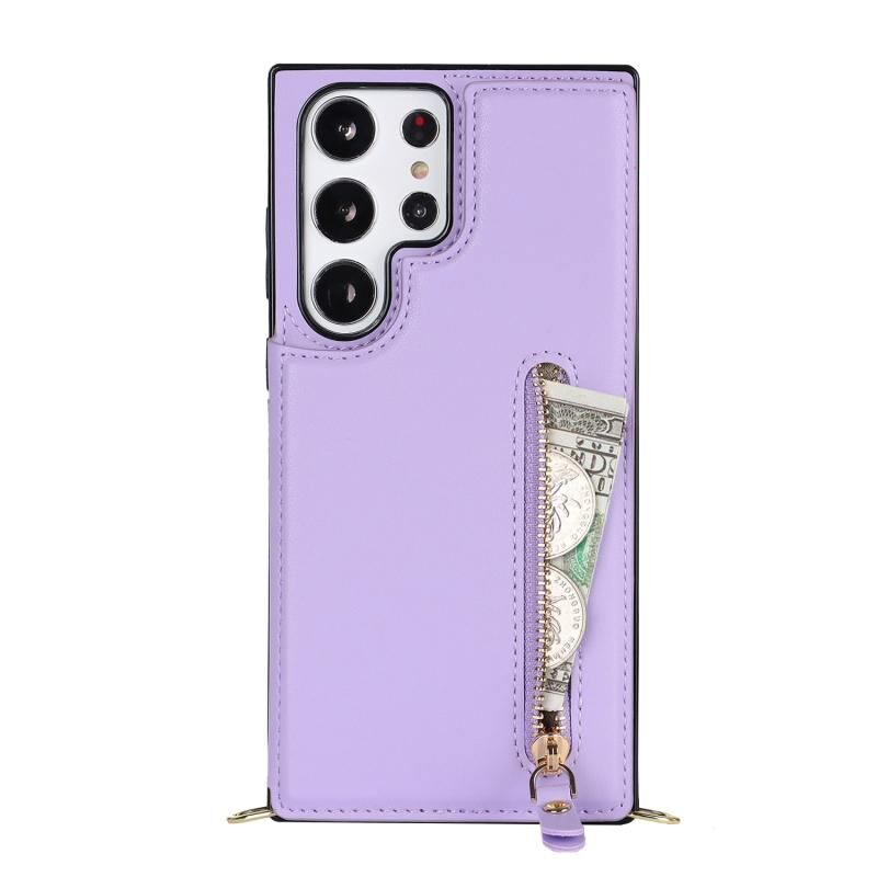 Για Samsung Galaxy S23 Ultra 5G Cross-body φερμουάρ τετράγωνη θήκη τηλεφώνου (Μωβ)