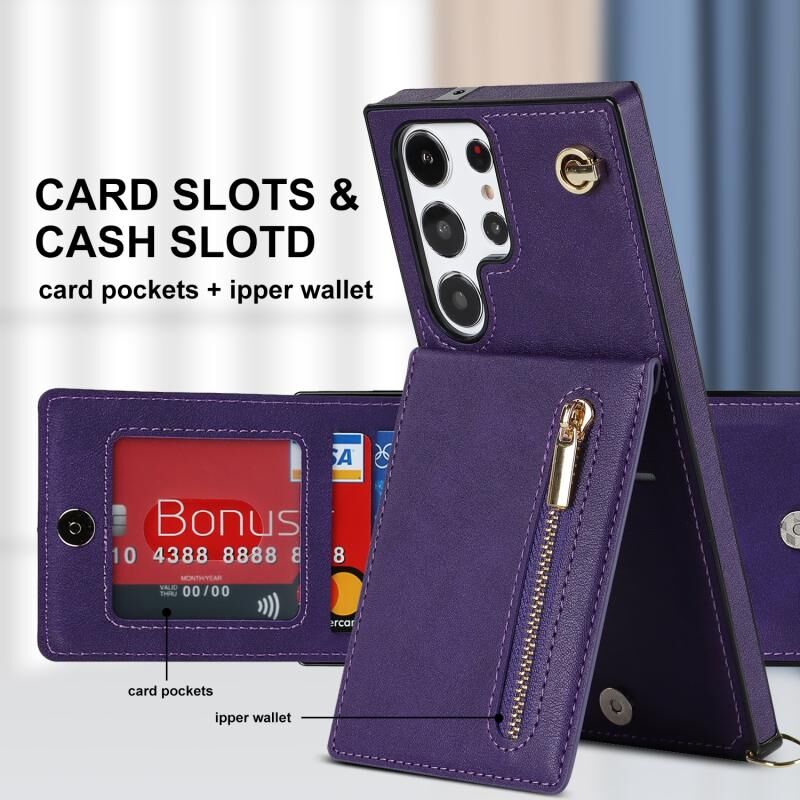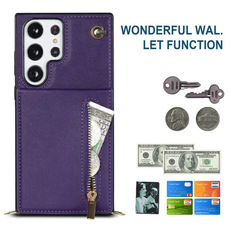 Για Samsung Galaxy S23 Ultra 5G Cross-body φερμουάρ τετράγωνο TPU + PU πίσω κάλυμμα υπόθεση (μωβ)