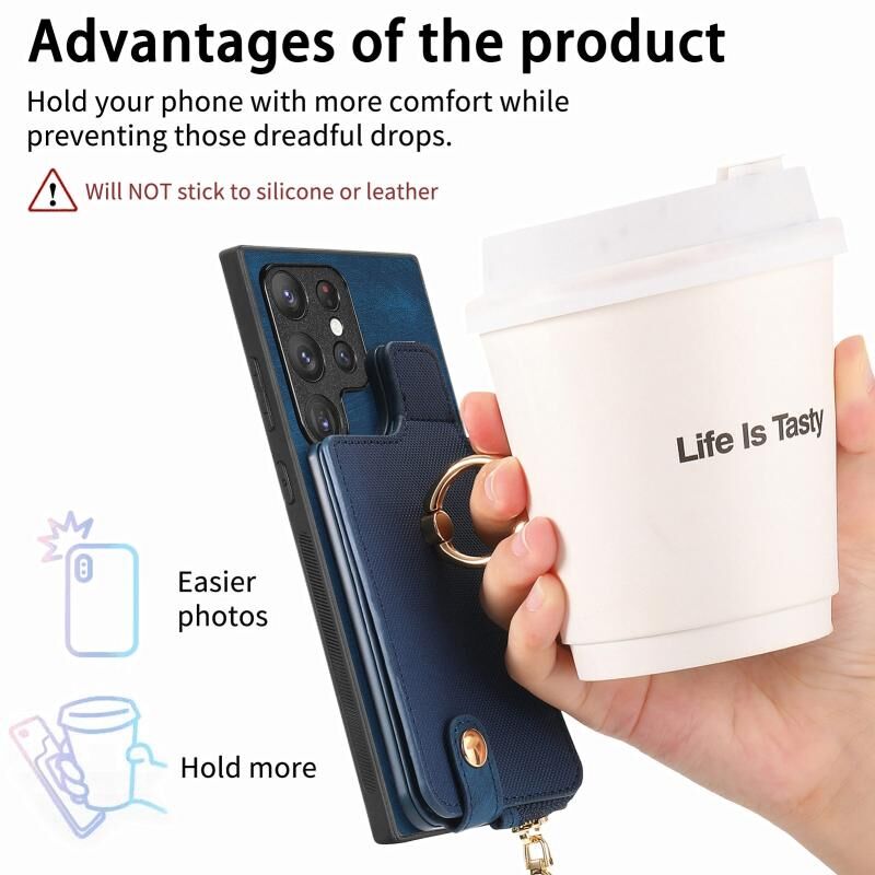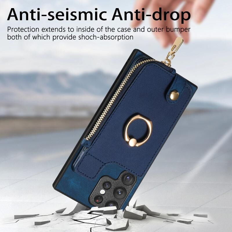Για Samsung Galaxy S23 Ultra 5G Cross Δερμάτινο δαχτυλίδι κάθετη φερμουάρ πορτοφόλι πίσω υπόθεση τηλεφώνου (μπλε)
