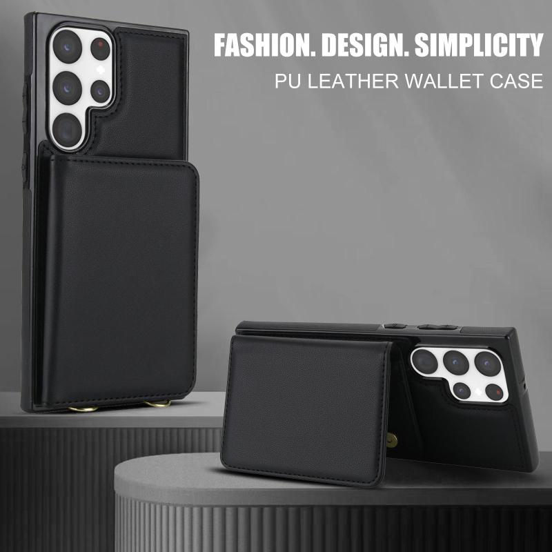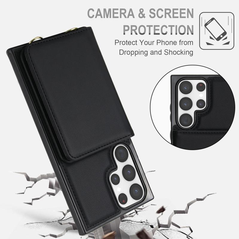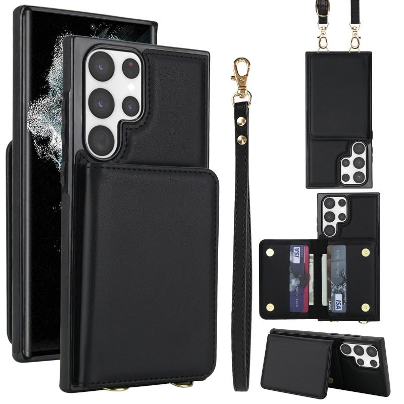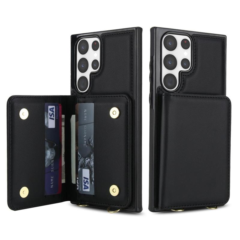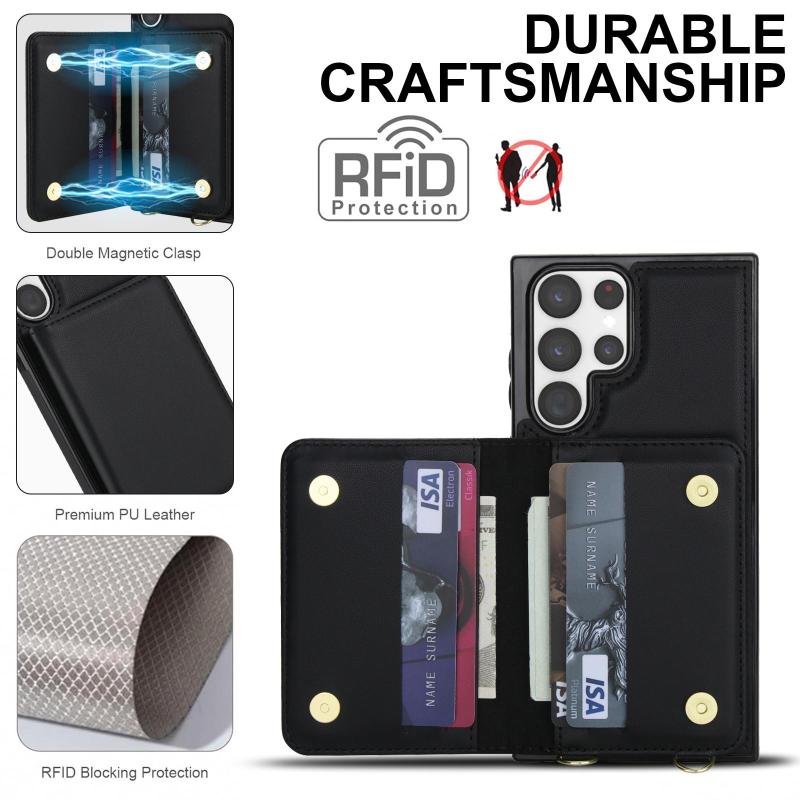 For Samsung Galaxy S23 Ultra 5G Crossbody Dual-buckle Wallet RFID Back Leather Phone Case(Black)