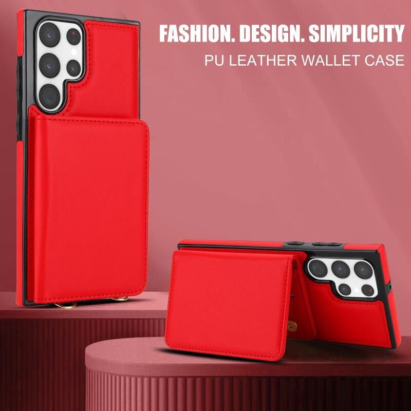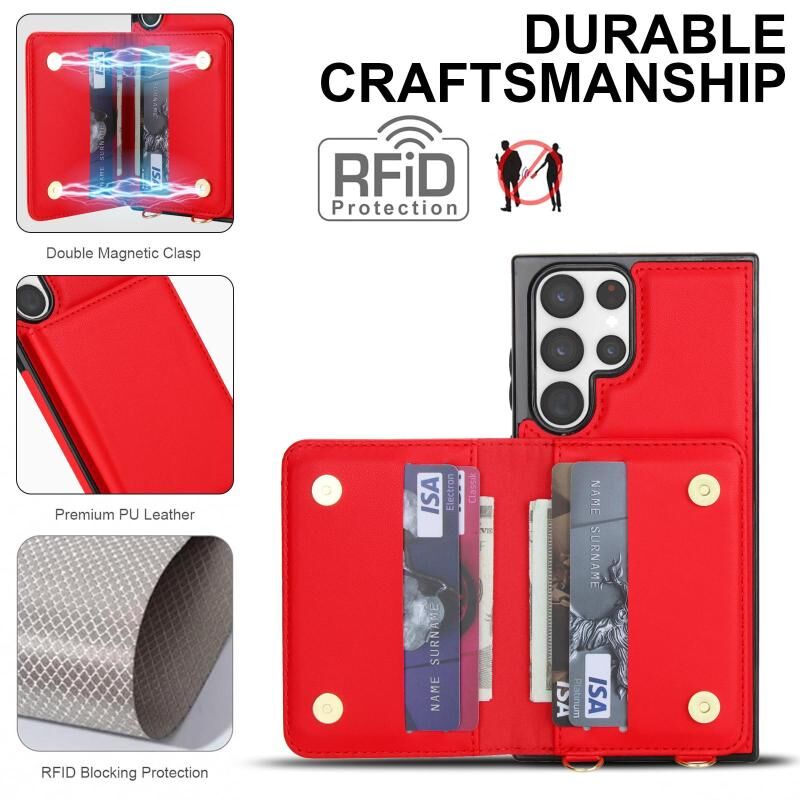 For Samsung Galaxy S23 Ultra 5G Crossbody Dual-buckle Wallet RFID Back Leather Phone Case(Red)