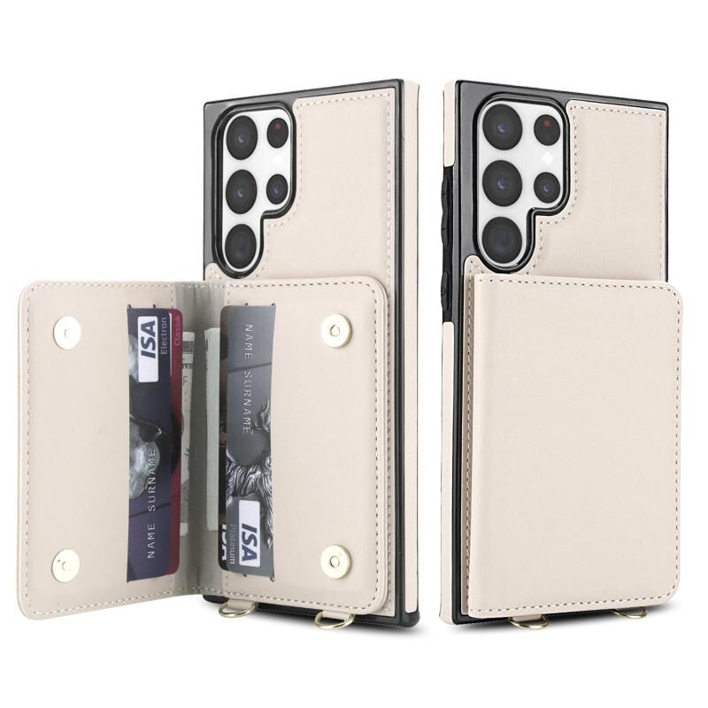 For Samsung Galaxy S23 Ultra 5G Crossbody Dual-buckle Wallet RFID Back Leather Phone Case(White)