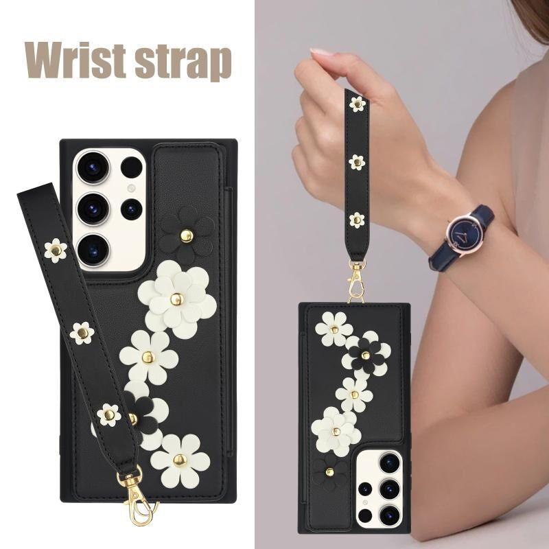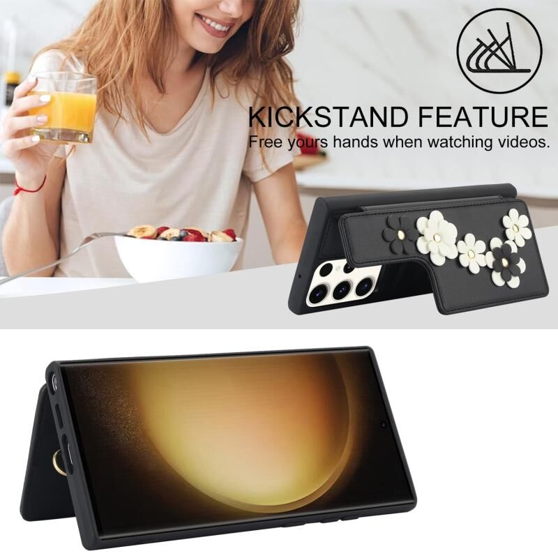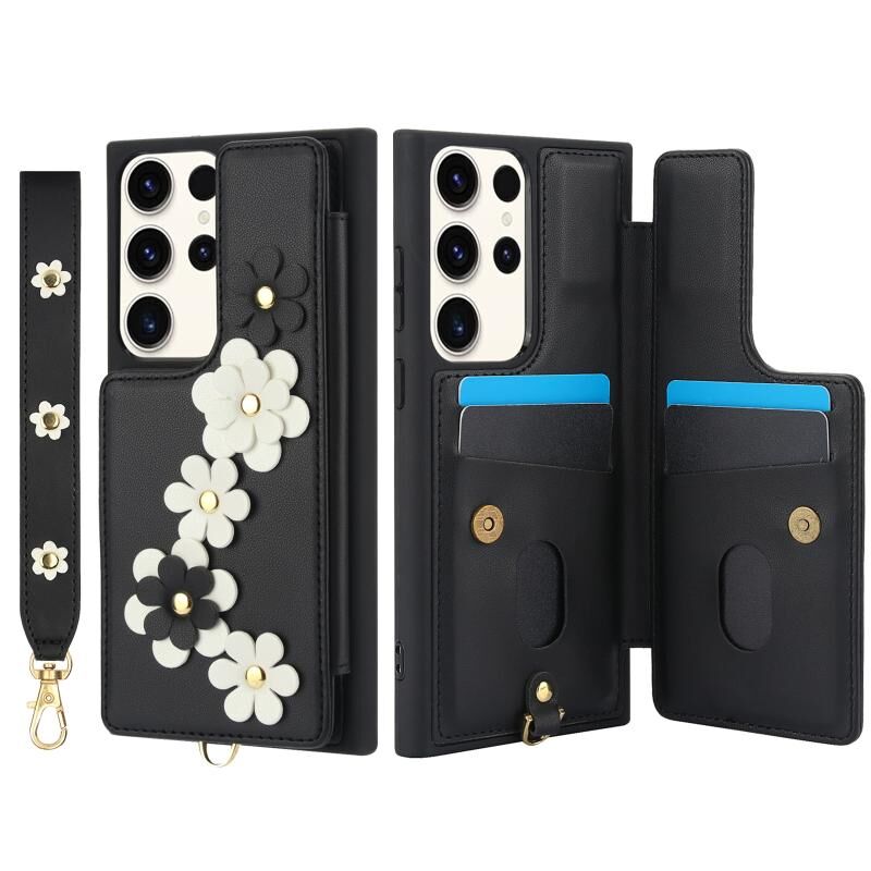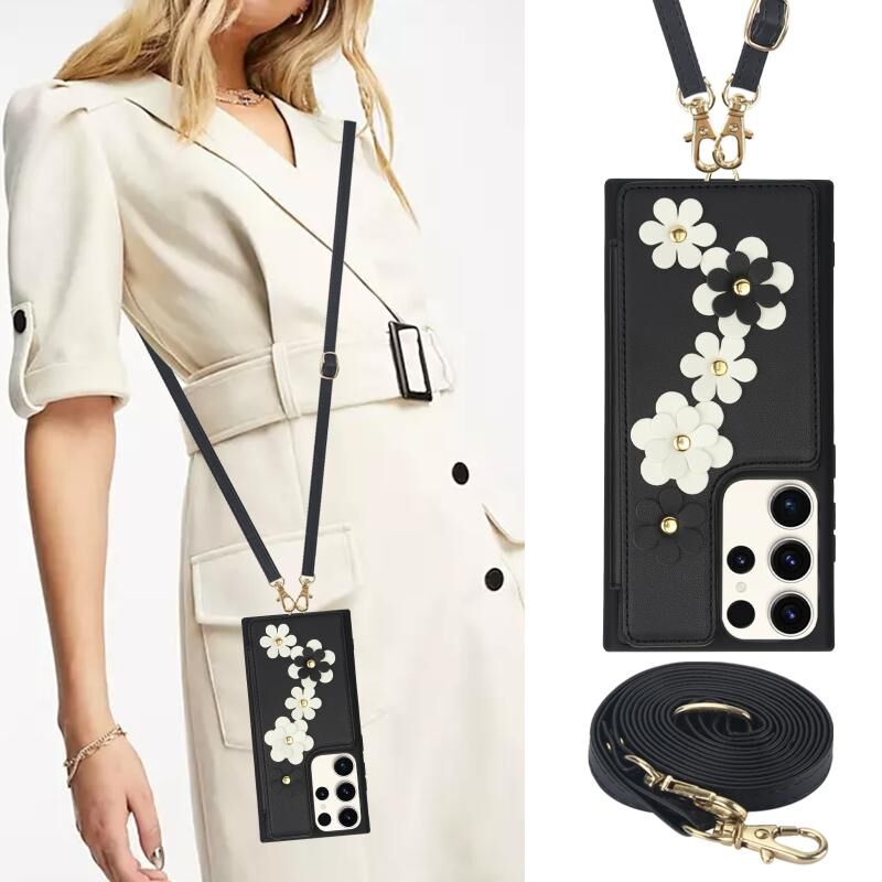 For Samsung Galaxy S23 Ultra 5G Crossbody Flower Pattern Leather Phone Case(Black)