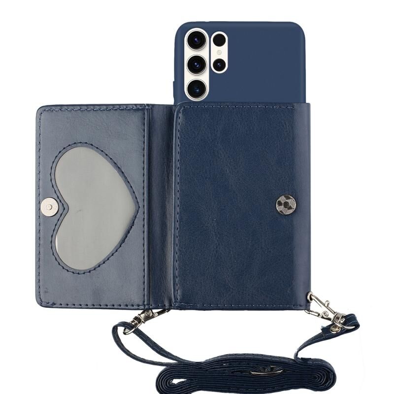 Για Samsung Galaxy S23 Ultra 5G Crossbody Lanyard πορτοφόλι κάρτα τσάντα τηλέφωνο υπόθεση (σκούρο μπλε)