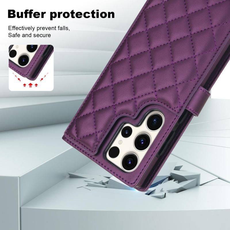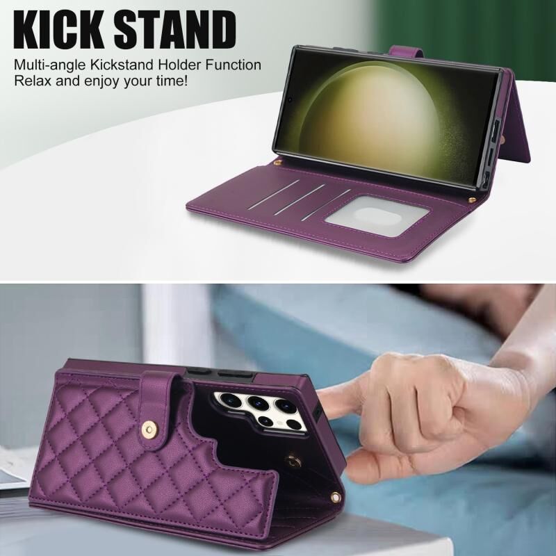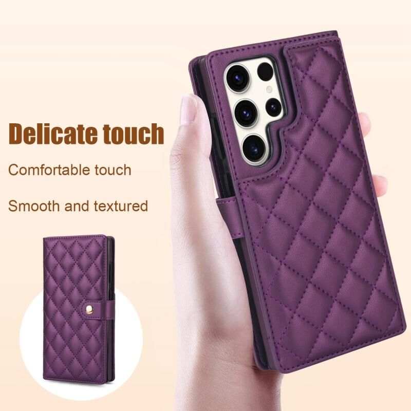 Για Samsung Galaxy S23 Ultra 5G Crossbody Πολυλειτουργική θήκη τηλεφώνου από δέρμα με ρόμβο (σκούρο μοβ)