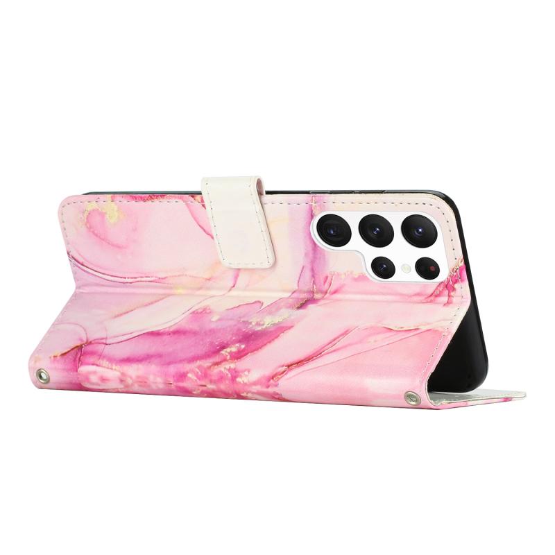 Θήκη τηλεφώνου Samsung Galaxy S23 Ultra 5G, δερμάτινη με σχέδιο μαρμάρου, βαμμένη, σε στυλ crossbody (Μωβ)