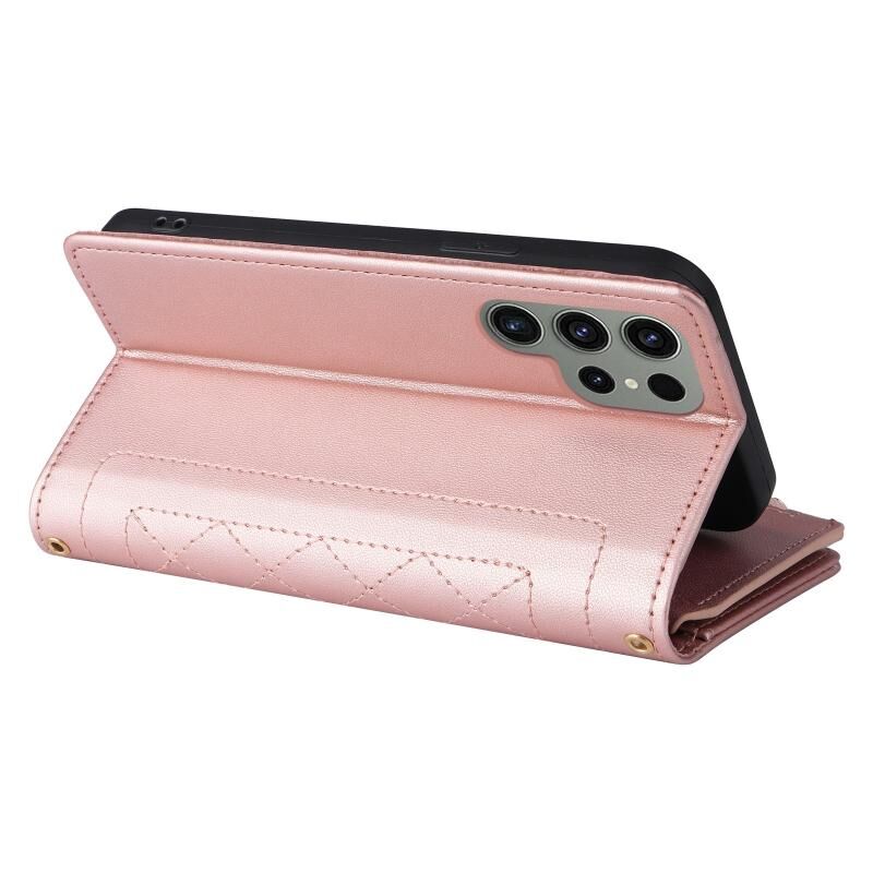 Για Samsung Galaxy S23 Ultra 5G Crossbody φερμουάρ πορτοφόλι ρόμβος δερμάτινη θήκη τηλεφώνου (Rose Gold)