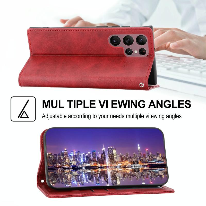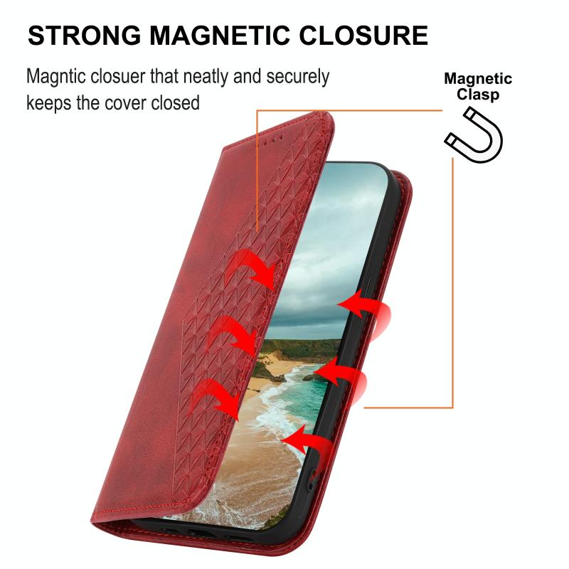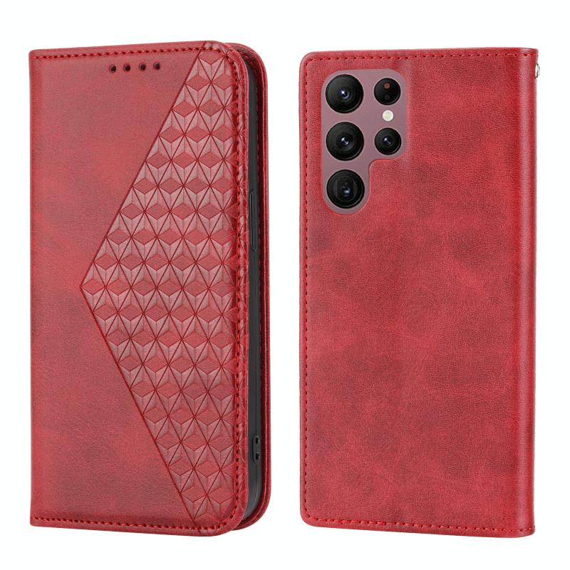 Θήκη κινητού Samsung Galaxy S23 Ultra 5G από δέρμα με μαγνητική απορρόφηση, με υφή μοσχαρίσιου δέρματος σε κυβικό πλέγμα (Κόκκινο)