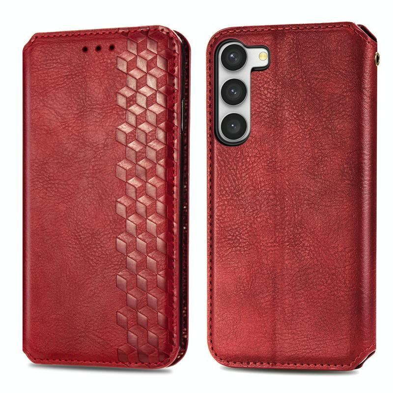 Για Samsung Galaxy S23 Ultra 5G Cubic Grid Πιεσμένο μαγνητική δερμάτινη θήκη τηλεφώνου (κόκκινο)