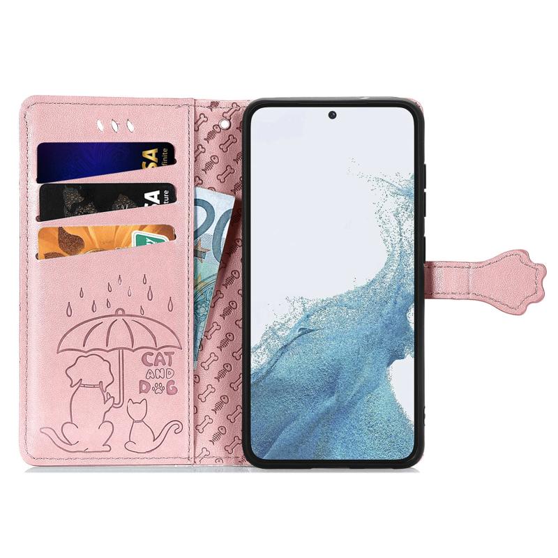 For Samsung Galaxy S23 Ultra 5G Cute Cat and Dog Embossed Leather Phone Case(Rose Gold)