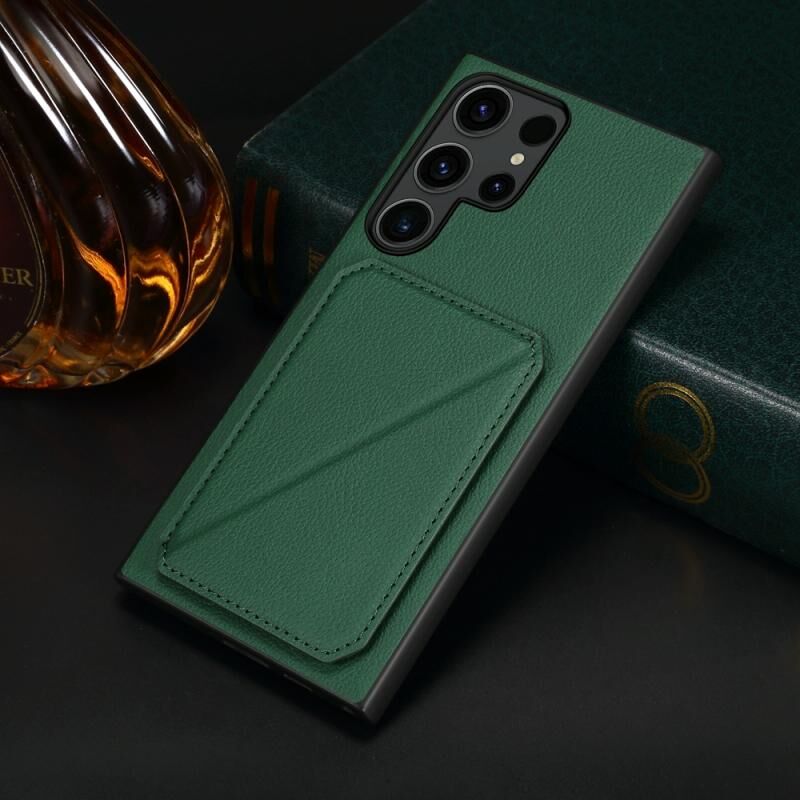 Για Samsung Galaxy S23 Ultra 5G D04 μοσχάρι Υφή Διπλή υποδοχή κάρτας κάτοχος υπόθεση τηλεφώνου (πράσινο)