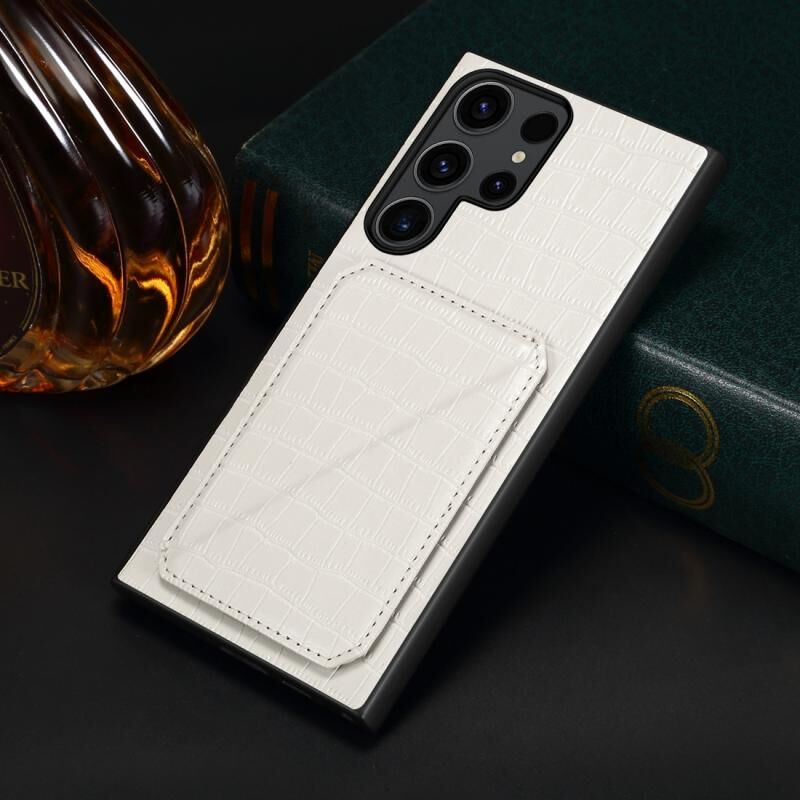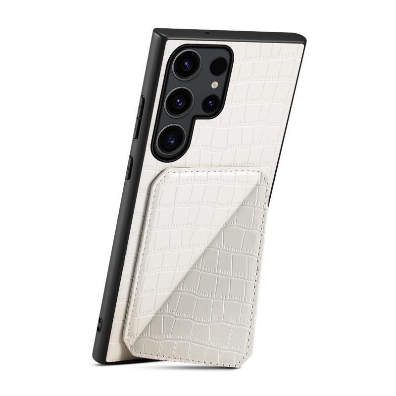 For Samsung Galaxy S23 Ultra 5G Denior Crocodile Texture Holder Electroplating Phone Case(White) (Denior)