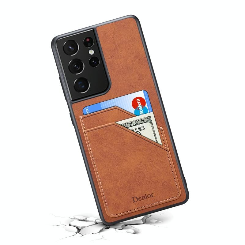 Για Samsung Galaxy S23 Ultra 5G Denior PU Dual Card Slot υπόθεση τηλεφώνου (καφέ) (Denior)