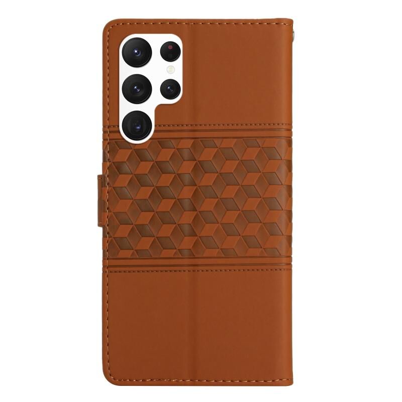Για Samsung Galaxy S23 Ultra 5G Diamond ανάγλυφο δέρμα αίσθηση δέρμα τηλέφωνο υπόθεση με κορδόνι (καφέ)