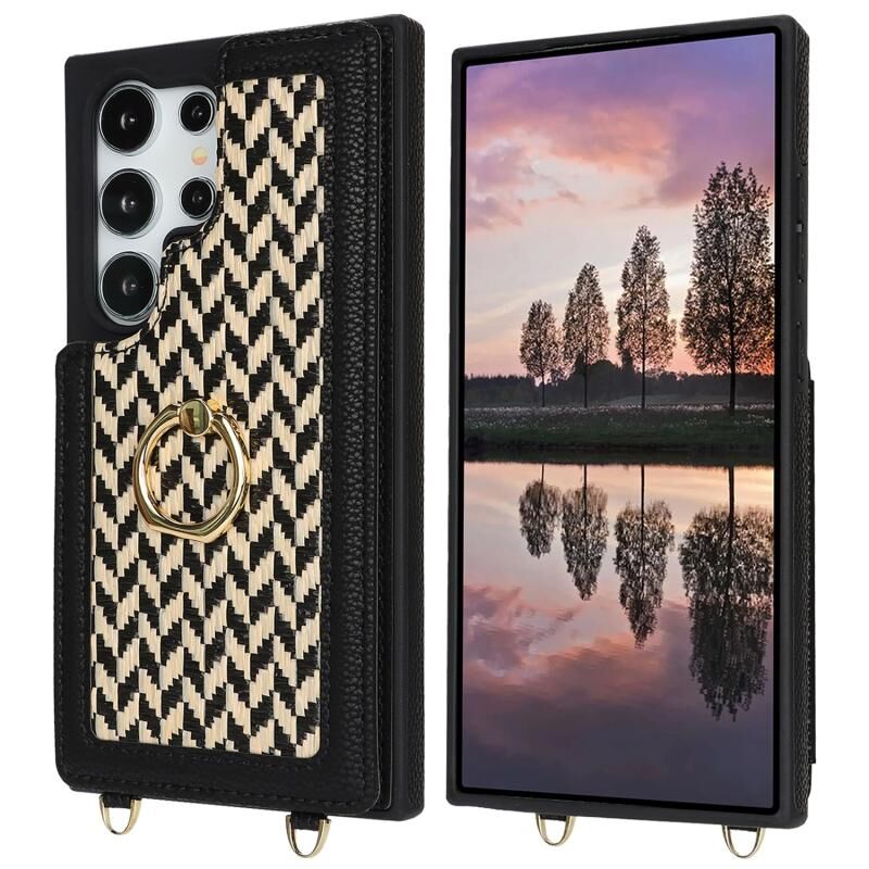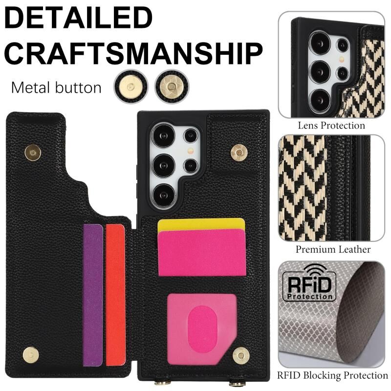 For Samsung Galaxy S23 Ultra 5G Double Bckle Card Slot Full Coverage Phone Case with Cross-body Strap(Black)