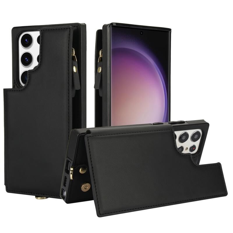 Θήκη τηλεφώνου Samsung Galaxy S23 Ultra 5G από δέρμα με διπλό φερμουάρ και RFID, με κοντό κορδόνι (Λευκό)