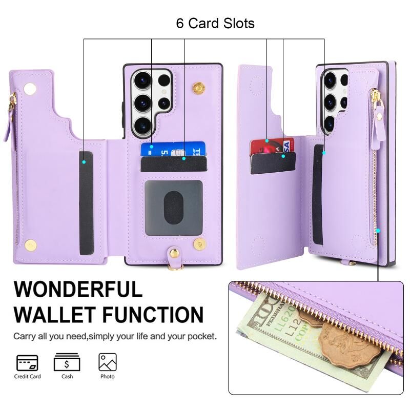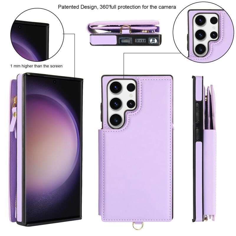 Θήκη τηλεφώνου Samsung Galaxy S23 Ultra 5G από δέρμα με διπλό φερμουάρ και RFID, με κοντό κορδόνι (Λευκό)