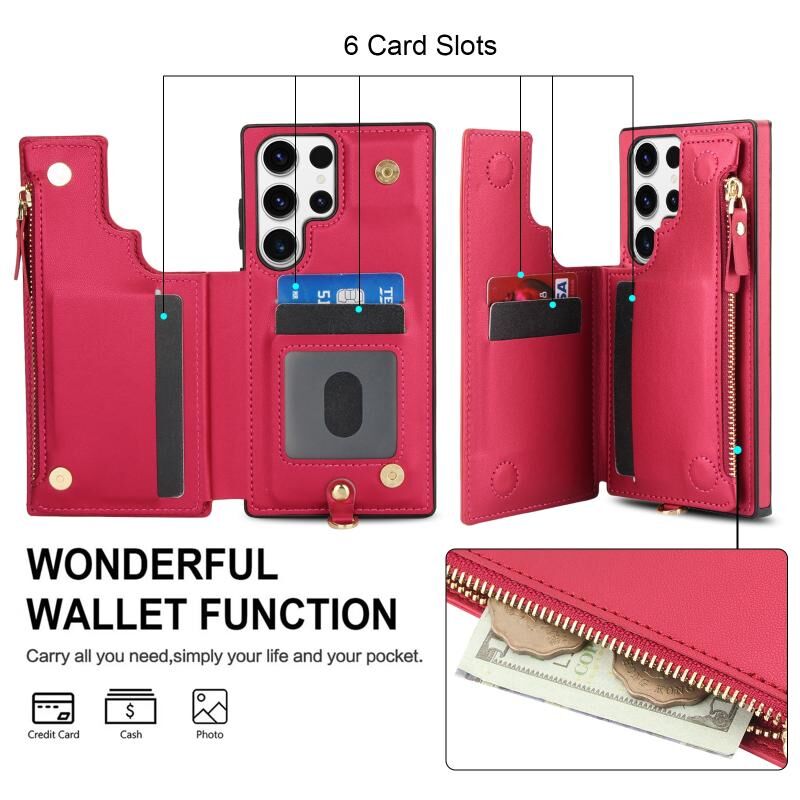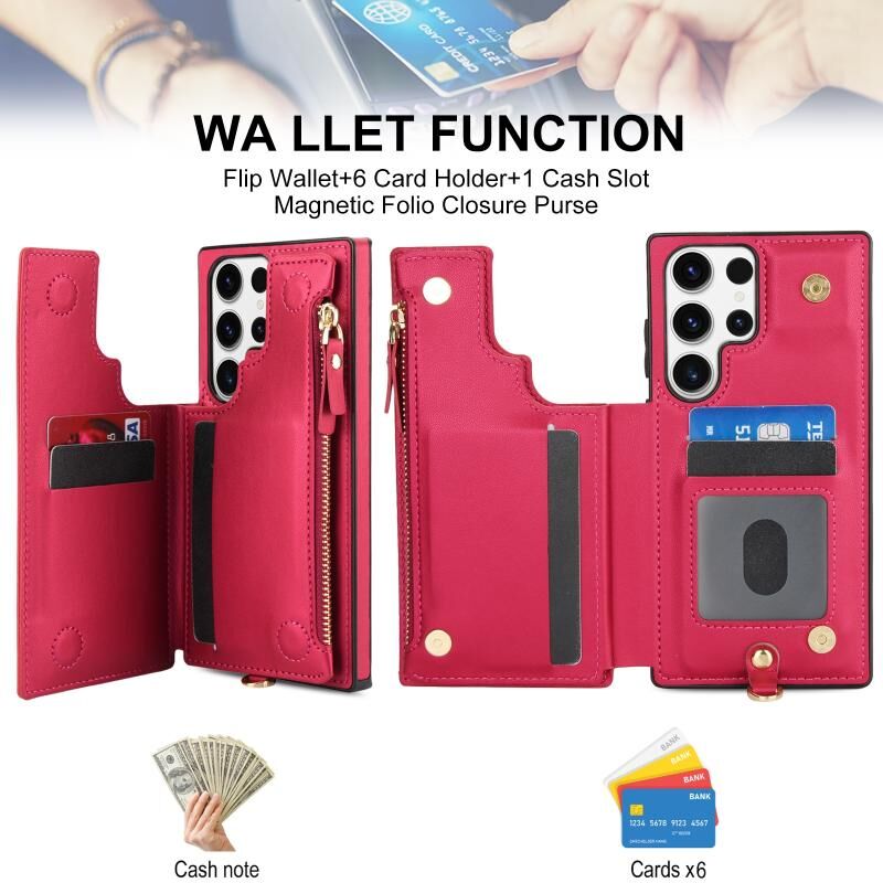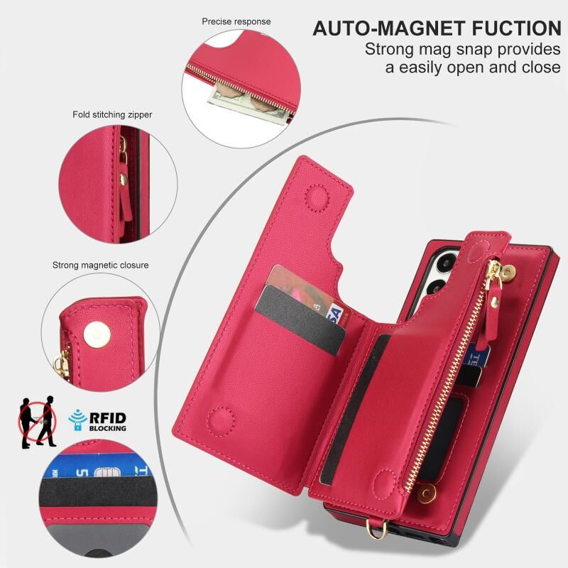 Θήκη τηλεφώνου Samsung Galaxy S23 Ultra 5G από δέρμα με διπλό φερμουάρ και RFID, με κοντό κορδόνι (Λευκό)