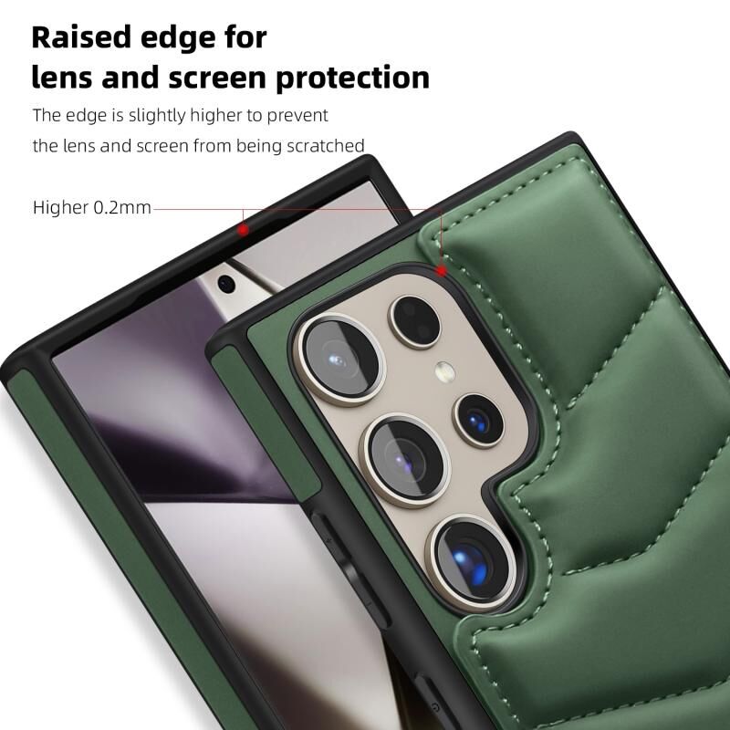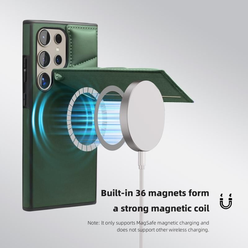 For Samsung Galaxy S23 Ultra 5G Down Jacket Card Bag Holder MagSafe Phone Case(Dark Green)