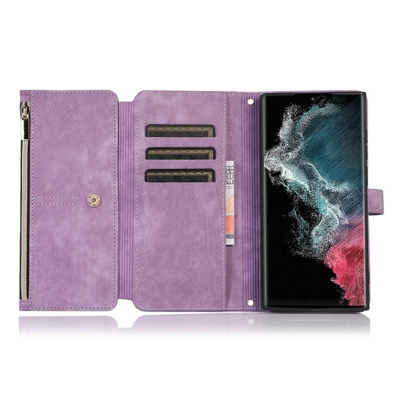 Για Samsung Galaxy S23 Ultra 5G Dream 9-κάρτα πορτοφόλι φερμουάρ τσάντα δερμάτινη θήκη τηλεφώνου (μωβ)