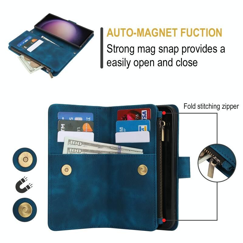 Για Samsung Galaxy S23 Ultra 5G Dream 9-Card φερμουάρ πορτοφόλι RFID δερμάτινη θήκη τηλεφώνου με κορδόνι (μπλε)