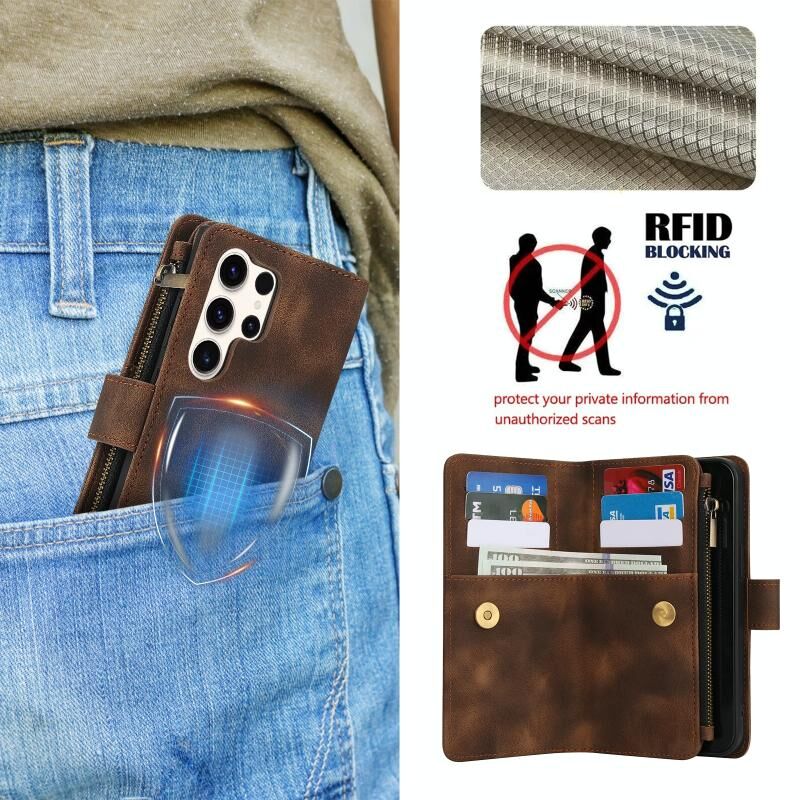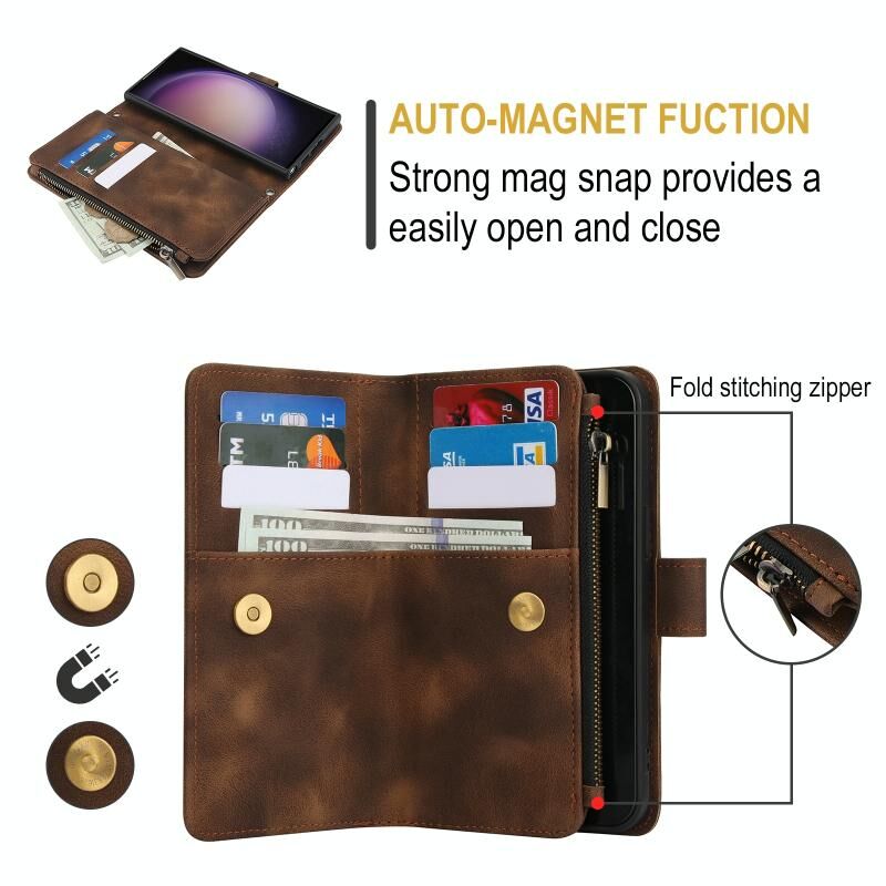 Για Samsung Galaxy S23 Ultra 5G Dream 9-Card φερμουάρ πορτοφόλι RFID δερμάτινη θήκη τηλεφώνου με κορδόνι (καφέ)