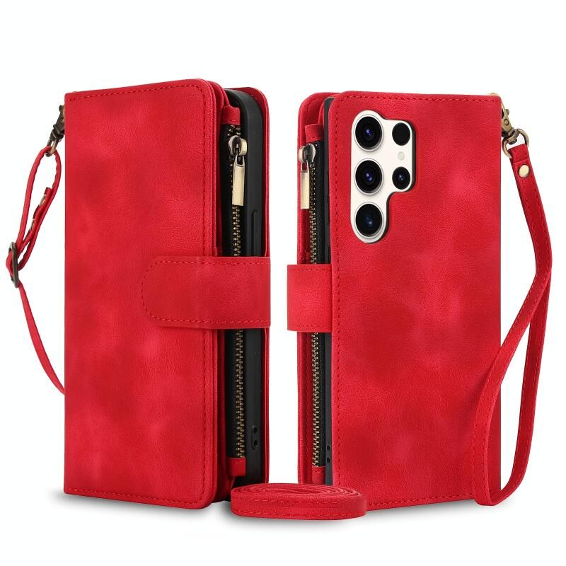 Για Samsung Galaxy S23 Ultra 5G Dream 9-κάρτα φερμουάρ πορτοφόλι RFID δερμάτινη θήκη τηλεφώνου με κορδόνι (κόκκινο)