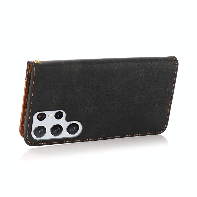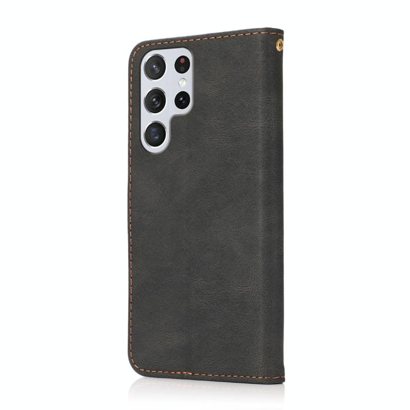 Θήκη τηλεφώνου δερμάτινη με διπλή ραφή για Samsung Galaxy S23 Ultra 5G (Καφέ Κόκκινο)