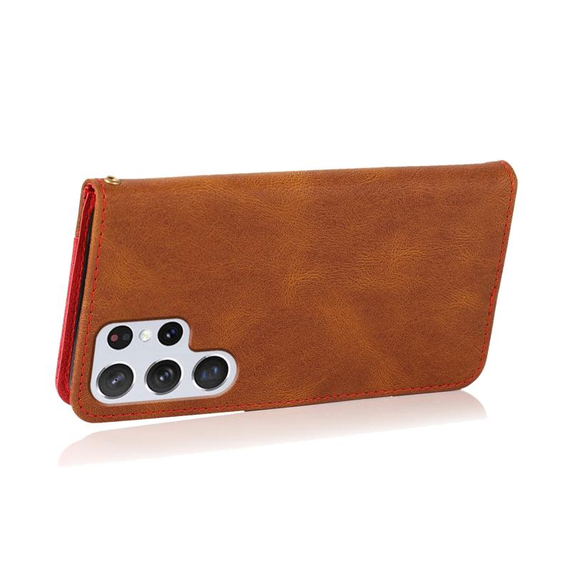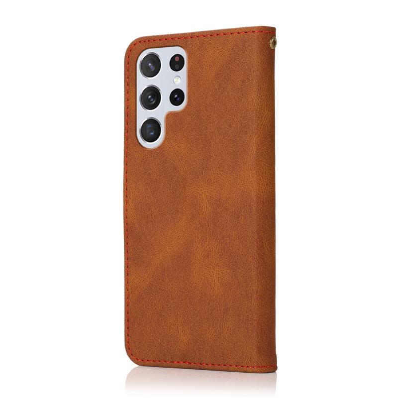 Θήκη τηλεφώνου δερμάτινη με διπλή ραφή για Samsung Galaxy S23 Ultra 5G (Καφέ Κόκκινο)