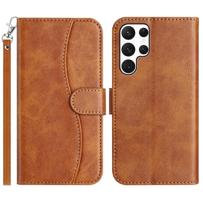 For Samsung Galaxy S23 Ultra 5G Dual-Folded S-shape Leather Phone Case(Brown)