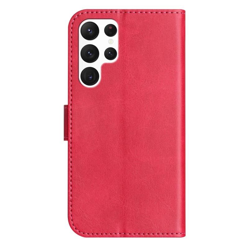 For Samsung Galaxy S23 Ultra 5G Dual-Folded S-shape Leather Phone Case(Rose Red)