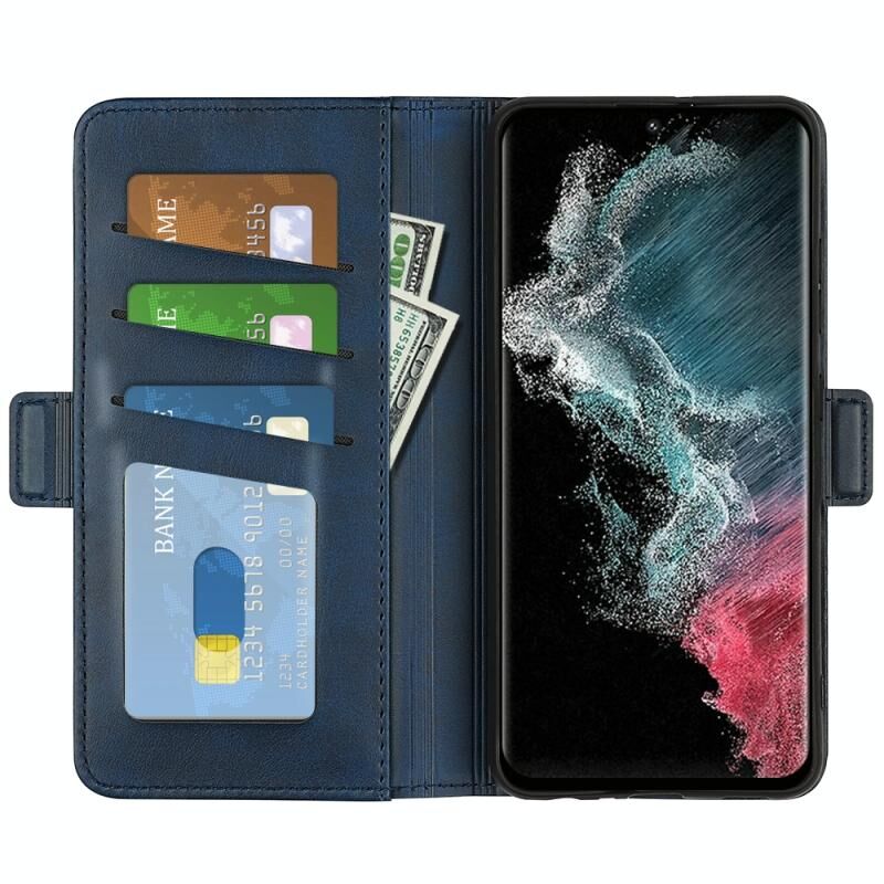 Για Samsung Galaxy S23 Ultra 5G διπλής όψης μαγνητική πόρπη δερμάτινη θήκη τηλεφώνου (σκούρο μπλε)