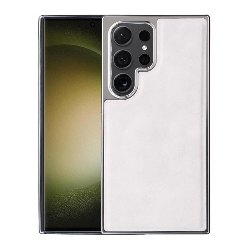 Θήκη τηλεφώνου Samsung Galaxy S23 Ultra 5G με ηλεκτρολυτική επικάλυψη, υβριδική από PU και TPU, συμβατή με MagSafe (Λευκό)