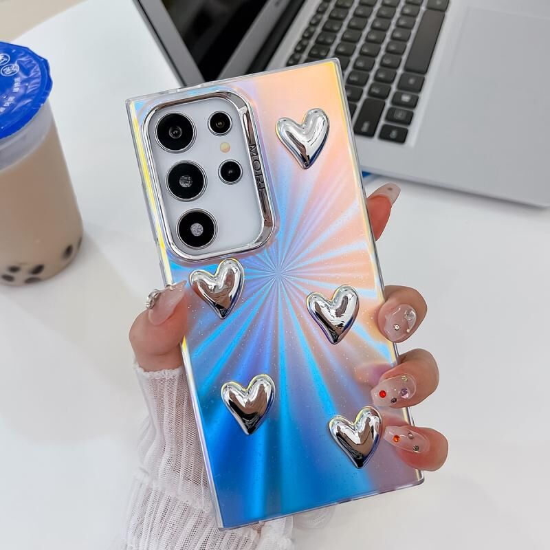 Θήκη κινητού τηλεφώνου TPU με λέιζερ 5 καρδιών και ηλεκτρολυτική επίστρωση για Samsung Galaxy S23 Ultra 5G (Ρίγες CD)