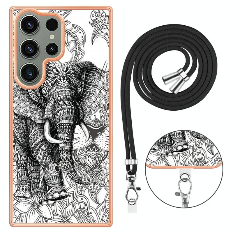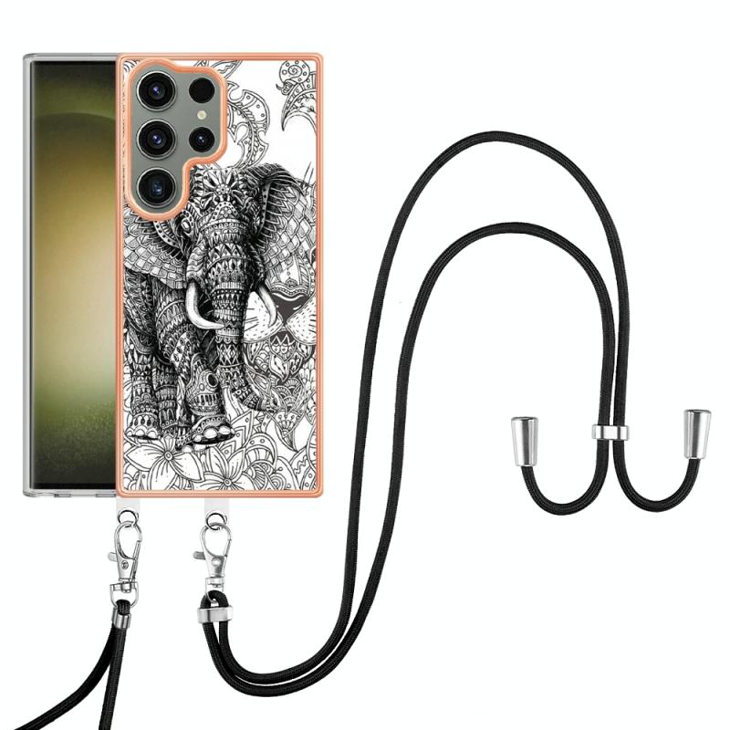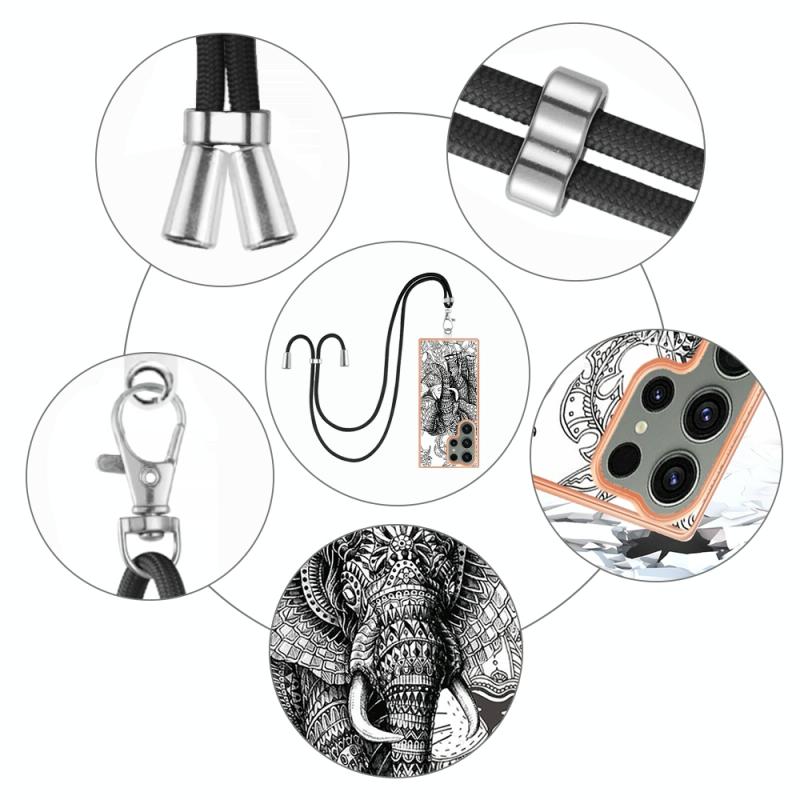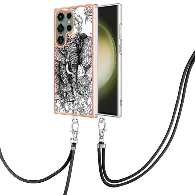 For Samsung Galaxy S23 Ultra 5G Electroplating Dual-side IMD Phone Case with Lanyard(Totem Elephant)