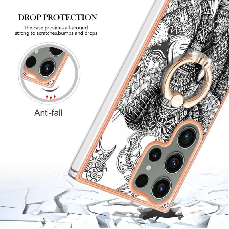 Θήκη τηλεφώνου με δακτύλιο στήριξης και ηλεκτρολυτική επιμετάλλωση διπλής όψης IMD για Samsung Galaxy S23 Ultra 5G (Totem Elephant)