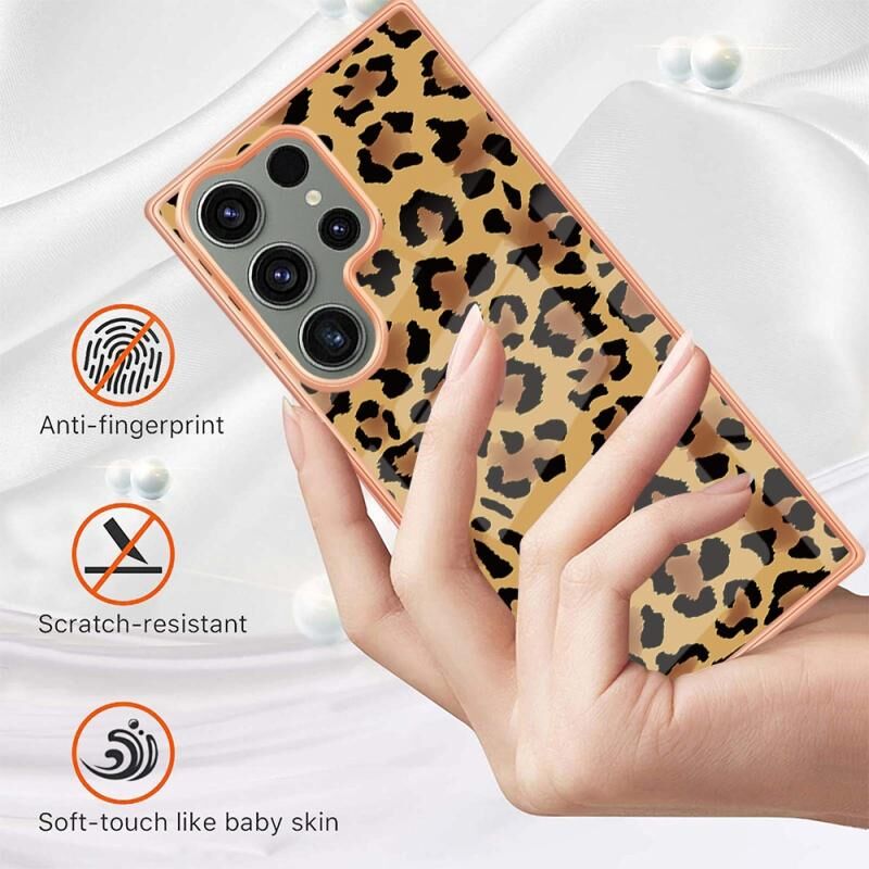 Θήκη τηλεφώνου για Samsung Galaxy S23 Ultra 5G με ηλεκτρολυτική μαρμάρινη όψη IMD διπλής όψης (εκτύπωση λεοπάρδαλης)