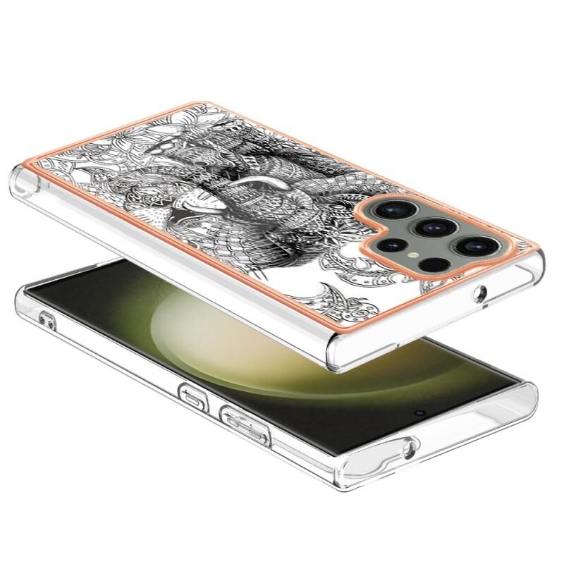 For Samsung Galaxy S23 Ultra 5G Electroplating Marble Dual-side IMD Phone Case(Totem Elephant)